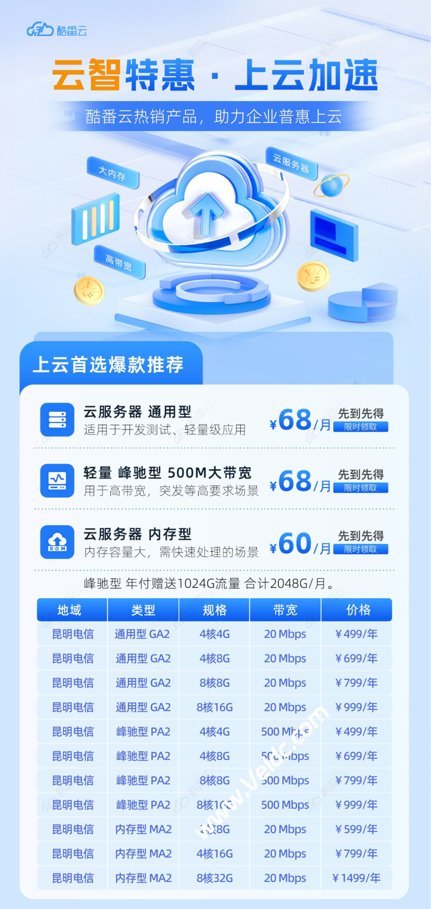 酷番云(KUFANYUN.COM),隶属于云南酷番云计算有限公司,品牌于2016年成立,是比较老牌的IDC服务,旗下产品有云服务器,裸金属,Edge Scdn,SSL证书,等多类型产品,最近带来了新的一年活动产品,云智特惠,上云加速季。N+热销云计算、域名注册,EDGE SCDN安全加速和企业应用产品限量购买,目前开放的节点有,昆明,西安,长沙,昆明性价比是比较高的,最主要是目前参加的这三个地区的节点,新购续费都是一个价格,这个对老用户非常友好。具体各位可以看看下面的介绍。