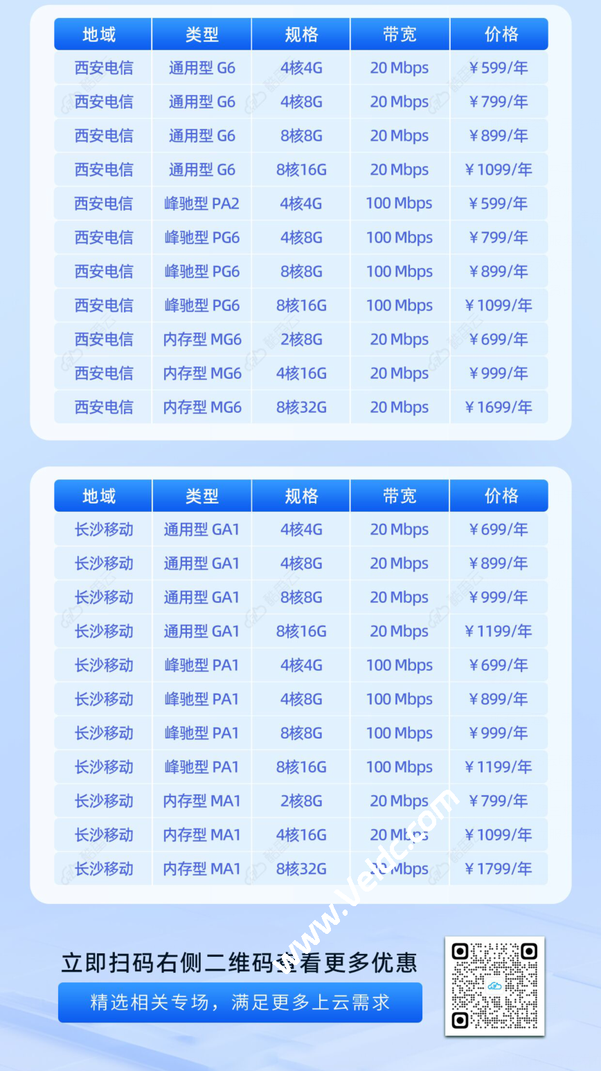 目前活动详情,昆明的是比较划算的,大带宽500M限流2T(活动赠送1T)499一年,其他节点,西安,长沙的是100M 峰值的,但是性价比也比较高的,也可以选择20M带宽独享的,这个看自己的需求,如果业务量没有突发的需求,可以选择20M独享的这种,价格是一样的。