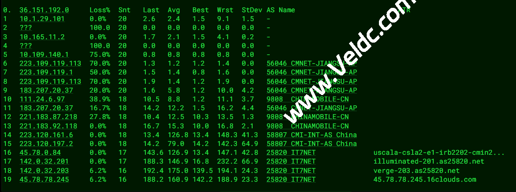 我们使用对中国电信、联通、移动以及教育网进行了回程路由测试,结果令人惊喜:这是标准的三网高端旗舰线路。