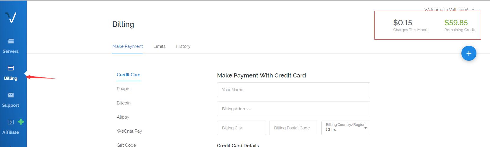 - Vultr 支付方式支持信用卡、PayPal、支付宝、微信支付