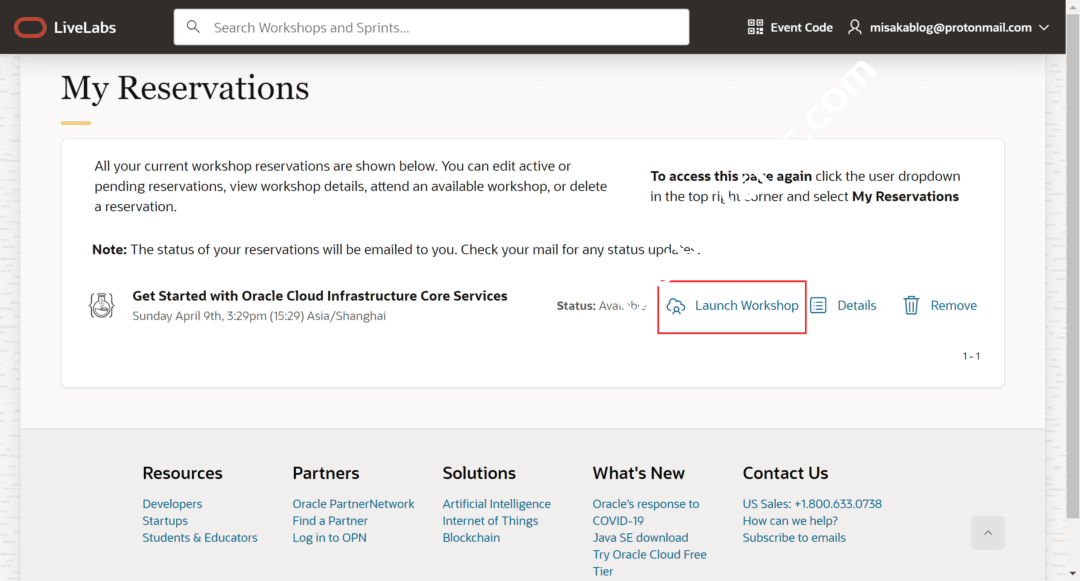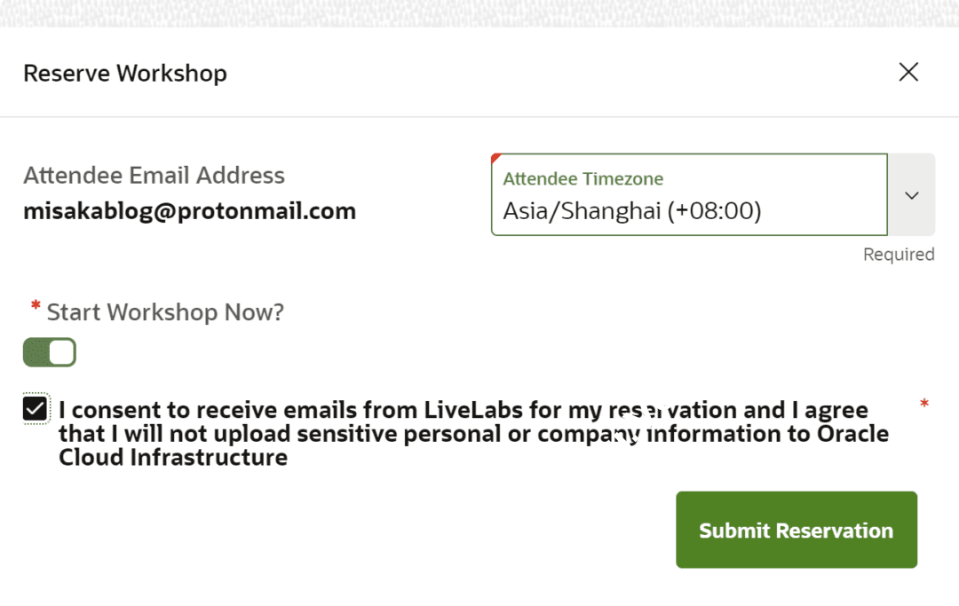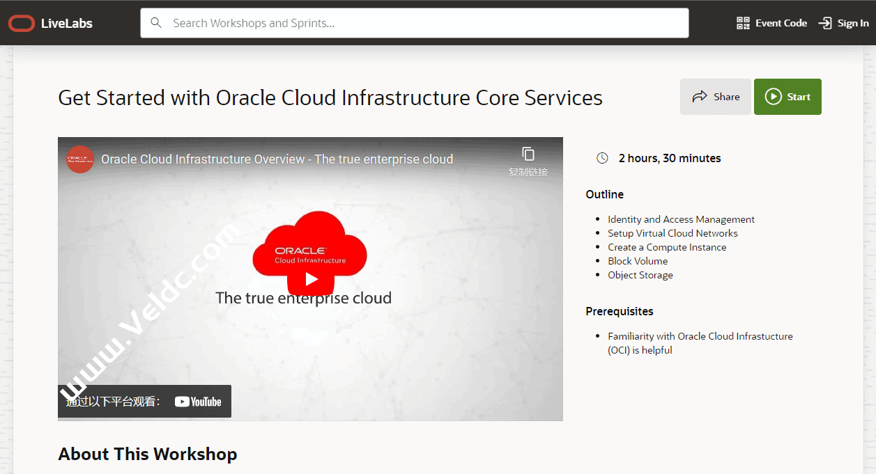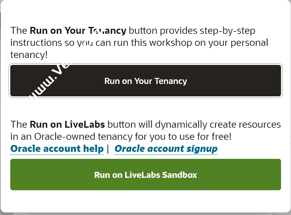 1、打开这个网站:https://apexapps.oracle.com/pls/apex/r/dbpm/livelabs/view-workshop?wid=648 ,登录注册好的Oracle账户后,点击“Start”启动沙盒