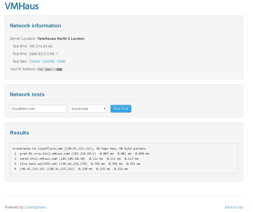 Looking Glass是一个VPS、独服商家常用的机房速度演示程序,Looking Glass的中文版修改IPv4下的路由追踪,结果将包含由IPIP提供的IP地理信息数据,比较适合国人使用。
