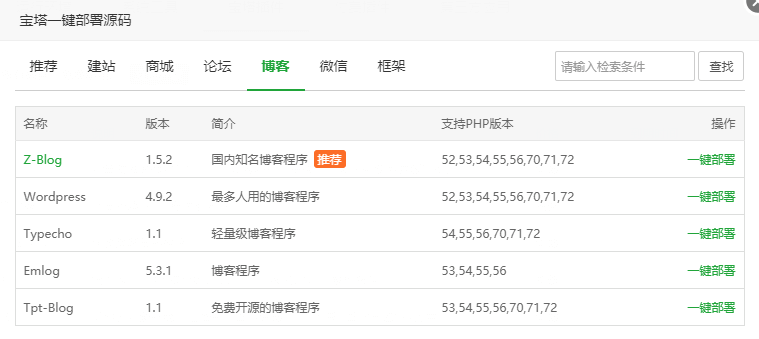 根据自己的喜好选择一个博客程序,然后点击一键部署。