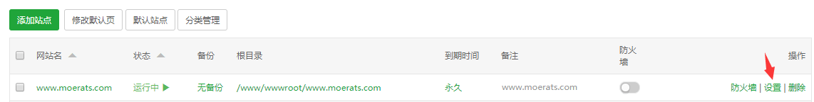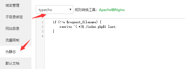 再点击伪静态,选择自己所安装的程序名称,比如Typecho,再点击保存即可。