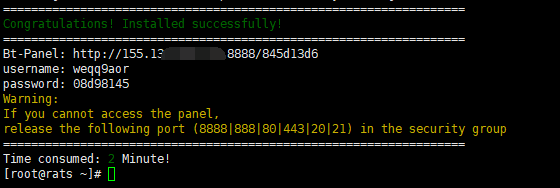 提示:如果我们后续未修改密码却忘记了密码的话,可以在SSH客户端使用命令bt default来查看安装后的默认后台信息。