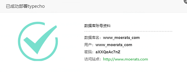 提交后,初步算安装完成了,然后记住给你的数据库名、用户名和密码。