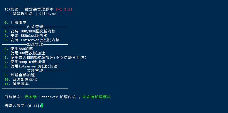 7.如果需要安装或切换其它版本的加速,比如原版BBR、魔改BBR、锐速(LotServer)等,那么需要重新进行以上各流程,选择对应版本的内核,内核安装成功后重启系统开启加速。
