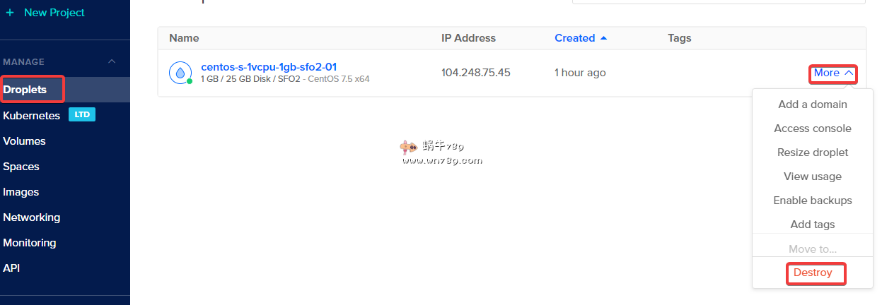 4、另外VPS不使用了记得按下图进行删除。