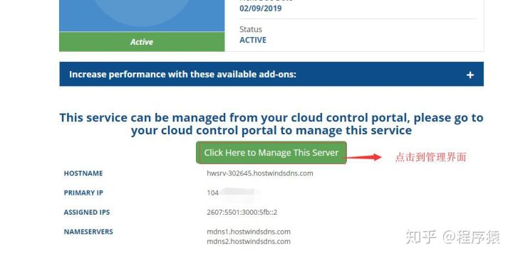 1、访问 https://clients.hostwinds.com/clientarea.php,点击你的Service,如下图所示: