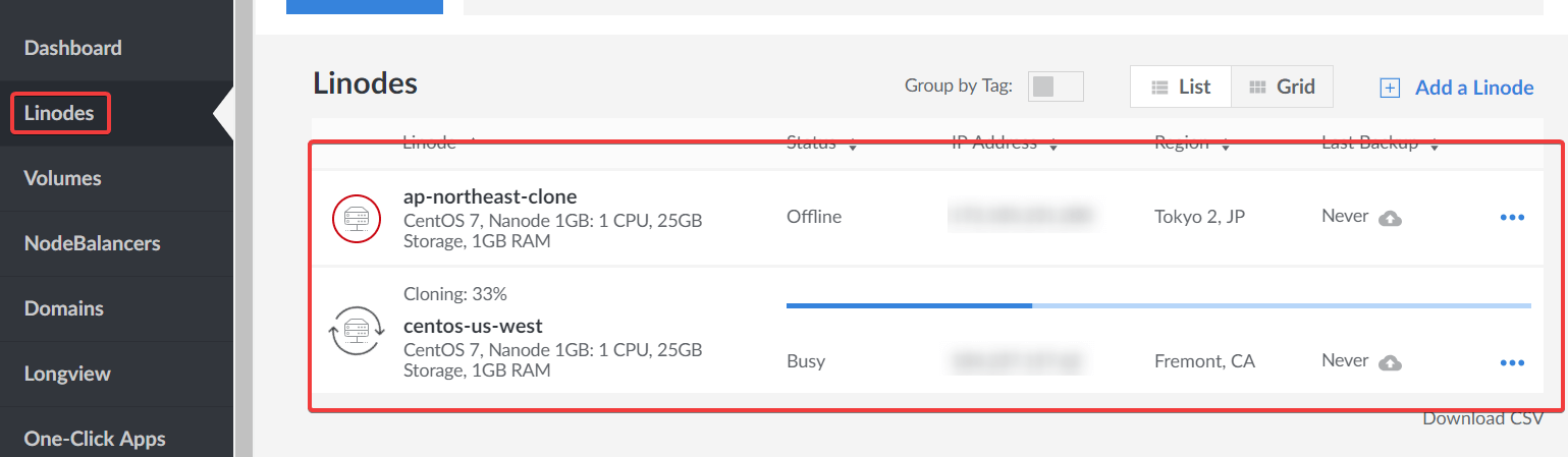 此文章当中蜗牛重点介绍的不是Linode云服务器产品和促销活动,重点说下他们的磁盘克隆功能。其实我们在使用VPS服务器过程当中,难免会遇到配置不够用了需要升级配置、或者IP出问题了需要重新购买一台,而且在更换vps过程当中不希望数据发生丢失,其实这些情况我们都可以通过Linode磁盘克隆功能来实现。下面是蜗牛把原美国弗里蒙特vps切换机房到日本vps的过程: